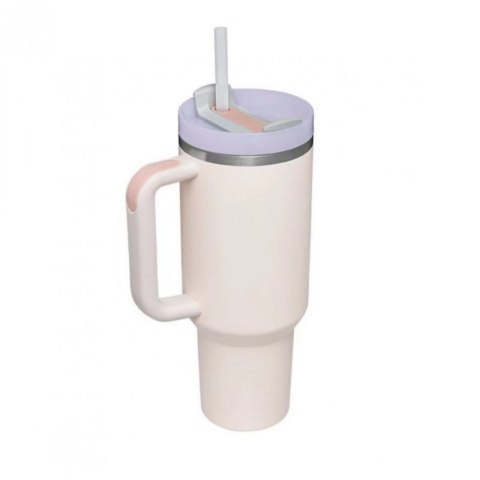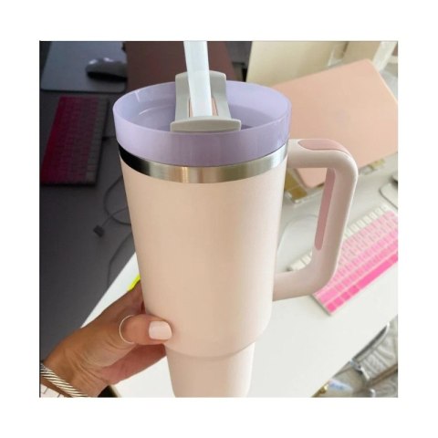 DUŻY POJEMNY KUBEK TERMICZNY Z UCHWYTEM i słomką TERMOS 1L PUDROWY UP02