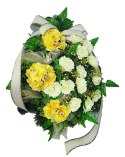 Kwiaty są integralnym elementem ceremonii ostatniego pożegnania lub jako element ozdobienia grobu, łącząc szacunek i elegancję w jednym, starannie wykonanym projekcie. Podkład wieńca jest wykonany z zielonych, gęsto splecionych gałązek PCV, które są zarówno trwałe, jak i estetyczne, podkreślając kolorystykę wiązanki.