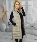Długi damski bezrękawnik kamizelka pikowana z kapturem TORI (Ecru)