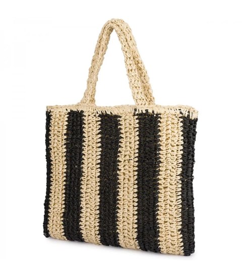 Duża torba pleciona shoperka w pionowe paski z napisem PARIS (Beżowy || Czarny)