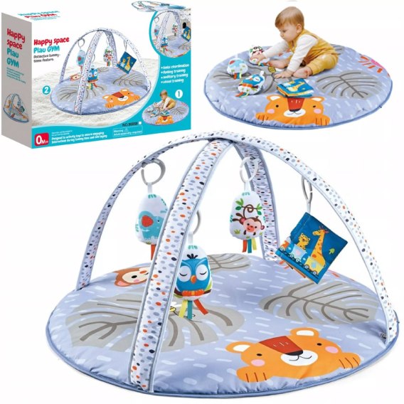 - Rozwój sensoryczny i intelektualny - kolorowe elementy, różne faktury materiału i bezpieczne grzechotki wbudowane w matę stymulują zmysły dotyku, wzroku i słuchu.