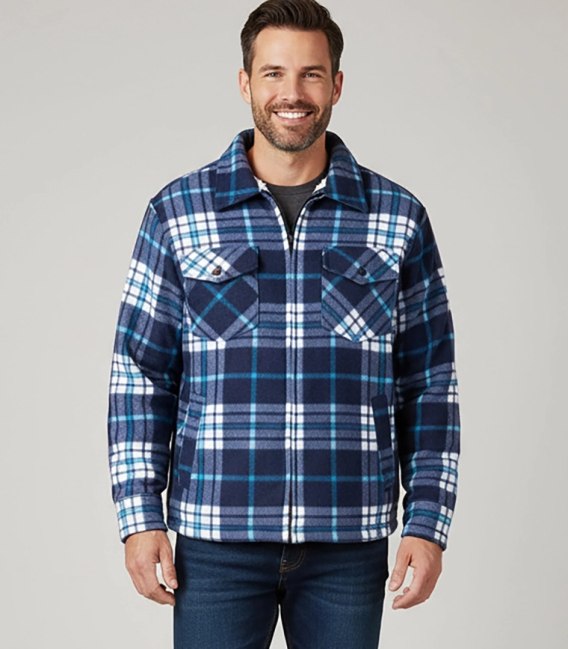 Ciepła polarowa koszula męska w kratę ocieplana futerkiem (Biały || Wielokolorowy || Niebieski)