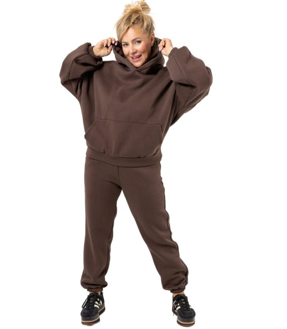 Ciepły gruby komplet dresowy bluza + spodnie STELLA (Brązowy)