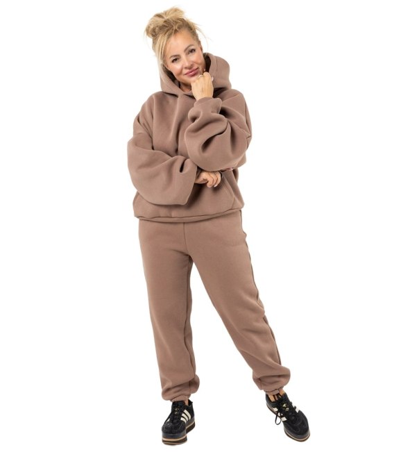 Ciepły gruby komplet dresowy bluza + spodnie STELLA (Brązowy)