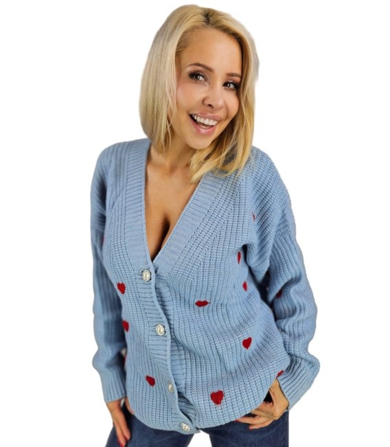 Ciepły i przytulny sweter damski w serca serduszka jesień SUMMER (Niebieski)