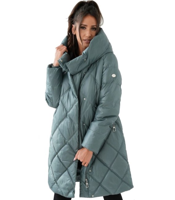 Ciepły płaszcz zimowy damski Pikowany Ocieplany MELANIA (Zielony)