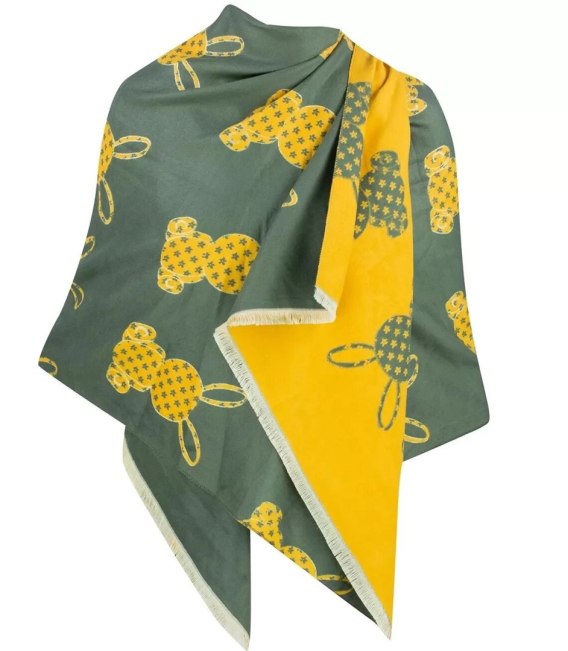 Ciepły szal szalik dwustronny króliczki dzianina (Zielony || Żółty)