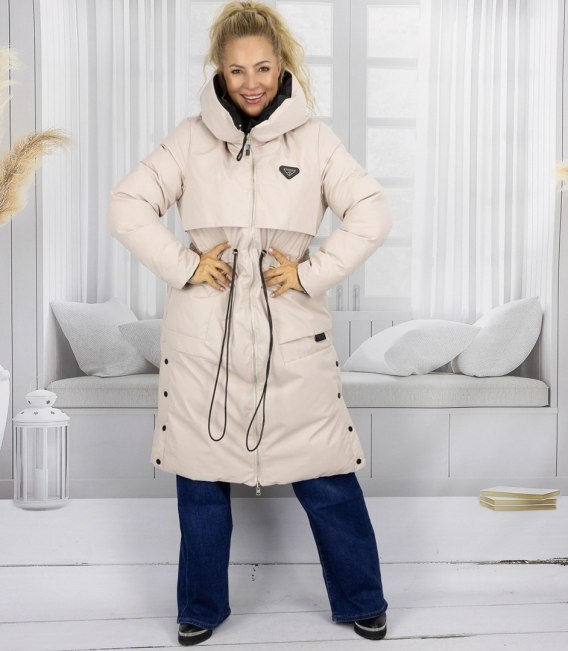 Długa kurtka damska płaszcz dwustronny MONIKA (Beżowy || Czarny)
