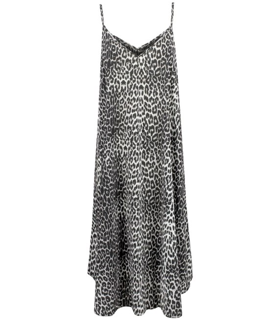 Długa sukienka maxi ramiączka luźna w panterkę cętki PAMELA (Czarny)