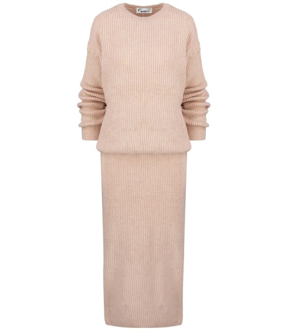 Dzianinowy komplet sweter + spódnica w jednolitym kolorze BELLA (Różowy)