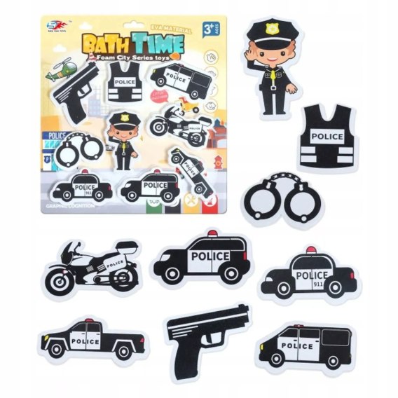✅ Radosna kąpiel i nauka w jednym - 9 elementów z motywem policji zachęca dziecko do samodzielności i odgrywania nowych scenek.