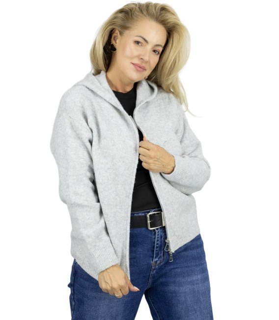 Krótki rozpinany sweter z kapturem kardigan na suwak NORA (Szary)