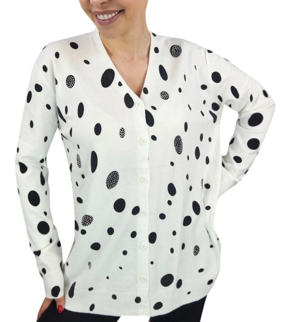 Krótki sweter w kropki i cyrkonie LIZA (Biały)