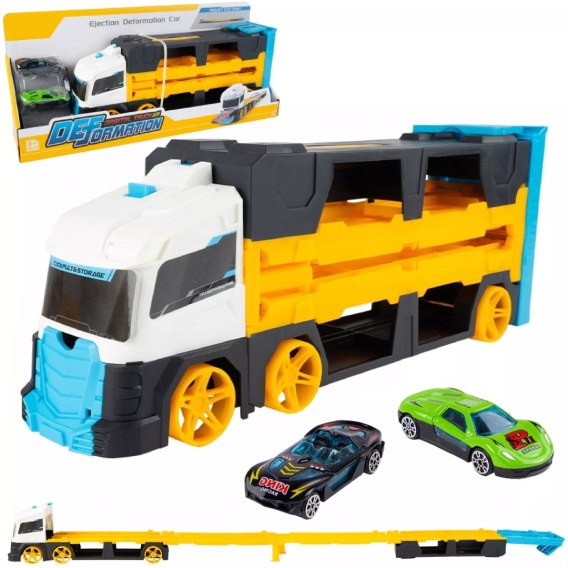 Laweta TIR 2w1 z Wyrzutnią Aut i Torem 125 cm + 2 Autka Wyścigowe