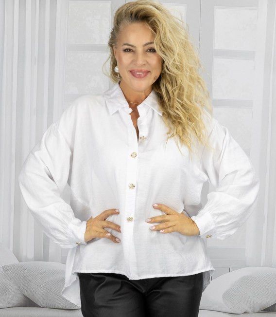 Luźna koszula z kokardą na plecach dłuższy tył LILIANA (Biały)
