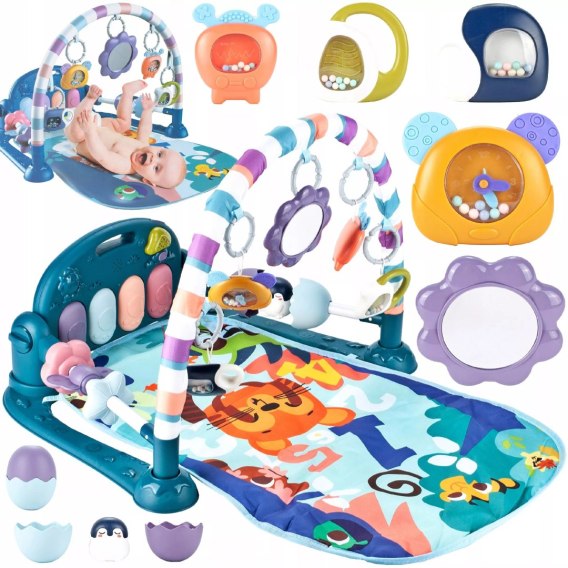 Mata edukacyjna z pianinkiem grzechotki gryzaki interaktywna dla niemowląt
