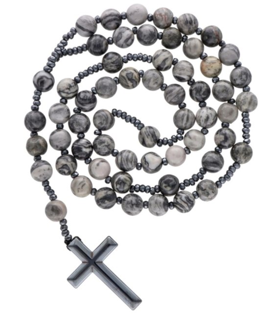 Naszyjnik Różaniec Wisiorek Jaspis Regulacja długości (Szary)