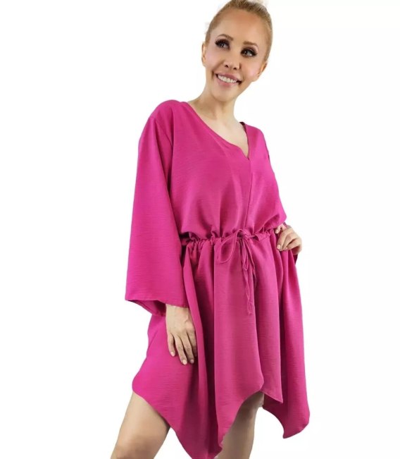 Piękna luźna sukienka mini asymetryczna (Różowy)