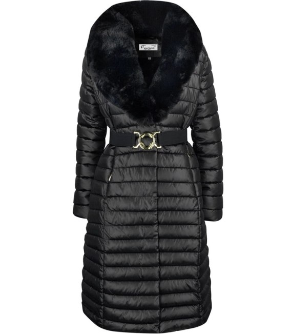 Pikowana kurtka płaszcz z odpinanym futerkiem Ciepła MARY (Czarny)
