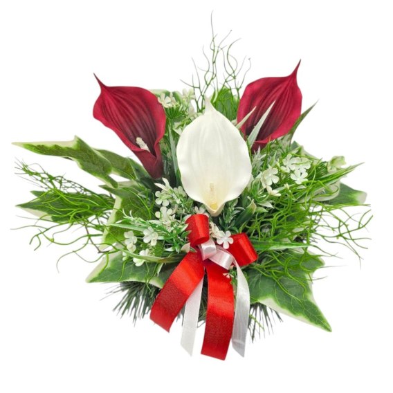 💚Stroik cechuje się unikalną kompozycją sztucznych kwiatów oraz innych dodatków. Starannie dobrane kwiaty są niezwykle realistyczne i naturalne, dodając wiązance autentyczności i podkreślając jej uroczysty charakter.