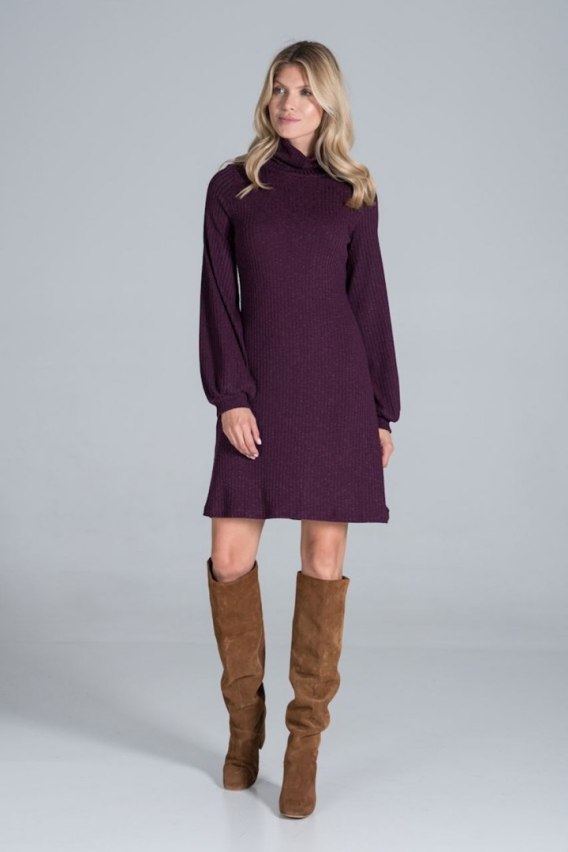 Sukienka midi z golfem z lejącej, prążkowanej dzianiny z długim rękawem zakończonym ściągaczem.