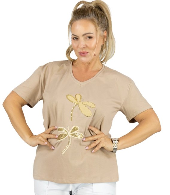 T-shit bluzka koszulka z ozdobną aplikacją w ważki LIBELLA (Beżowy)