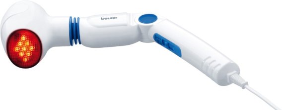 Lampa na podczerwień, 3 poziomy działania (masaż wibracyjny, ciepło podczerwieni, masaż wibracyjny z ciepłem podczerwieni), Głowica obrotowa, 4 wymienne nasadki masujące (2 nasadki z wypustkami, nasadka szczoteczki, nasadka stożkowa), Lampa rozgrzewająca z promieniami podczerwonymi, 3-stopniowa regulacja uchwytu