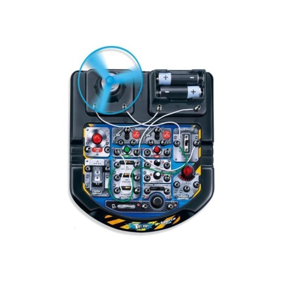 Łącz obwody i odkryj fascynujący świat elektryzujących doświadczeń! To duże, elektroniczne laboratorium daje możliwość wypróbowania różnych eksperymentów, np. latającego wentylatora. Wypróbuj różne kolejności łączenia kabelków, opisane w instrukcji obsługi, i sprawdź jaką reakcję urządzenia wywołasz.