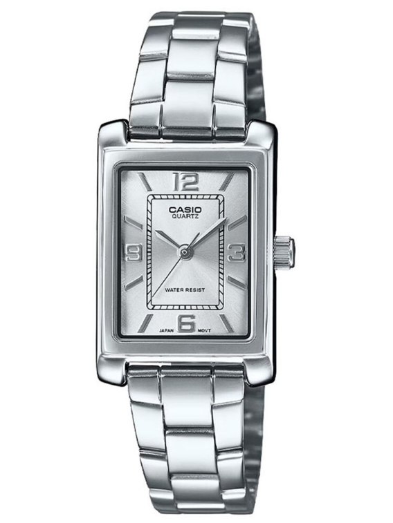 Srebrna koperta z eleganckim połyskiem doskonale komponuję się ze srebrną bransoletą wykonaną ze stali szlachetnej, nadając zegarkowi wyjątkowy charakter. Ten model doskonale sprawdzi się zarówno jako dodatek do codziennego stroju, jak i jako subtelny akcent w bardziej formalnych stylizacjach. Zegarek CASIO LTP-1234DD-7A to połączenie tradycji, precyzji i stylu, które podkreśli wyjątkowy gust każdej noszącej go kobiety.